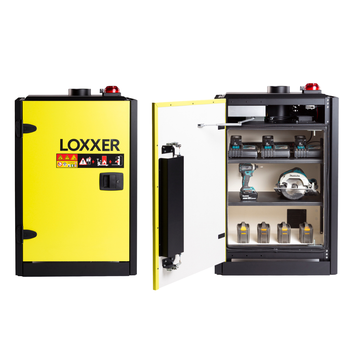 Deze opslag- en laadkast is ontworpen als toepassing voor het veilig opslaan en laden van lithium-ion accu’s in professionele omgevingen. Ideaal voor gebruik in e-bikes, e-steps, drones, scanners, laptops, hand- en tuingereedschap en meer. Met deze kast bescherm je niet alleen je batterijen, maar ook je omgeving tegen brandrisico’s en een thermal runaway.