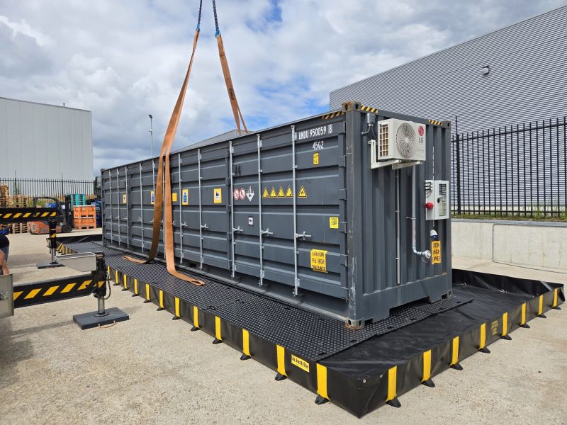 Onze Lithium Safety Containers voldoen aan de eisen van de PGS 37-2 richtlijn bij de opslag van lithium batterijen. Een Lithium Safety Container is gemaakt op basis van een zeecontainer. Deze wordt deskundig omgevormd tot een product dat een WBDBO van minimaal 90 minuten kan waarborgen. Aan de binnenzijde van de container zit een isolerende beplating en een aerosol blusunit van AF-X Fire Solutions.